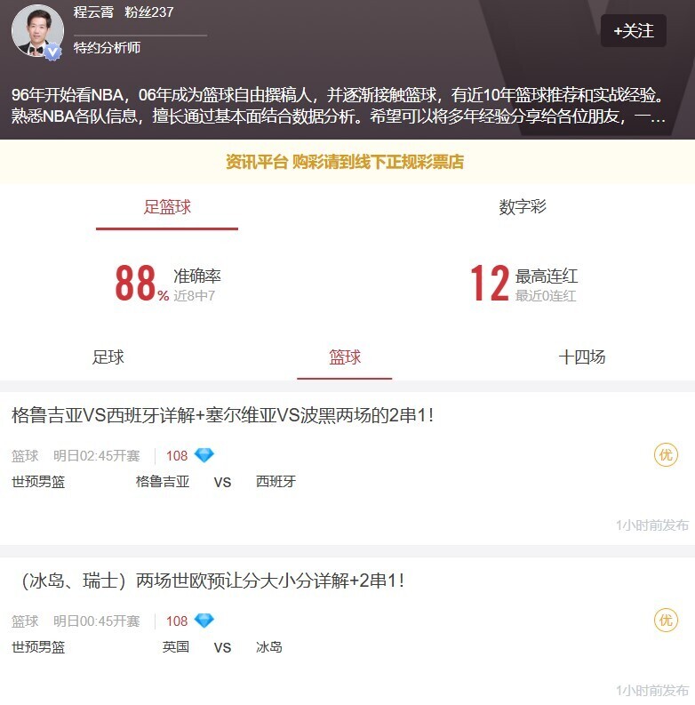 程云霄8中7!今日篮球推荐已发车,速速点击查看