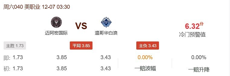 综合分析,本场决赛是风格与历史的碰撞。迈阿密国际进攻端依赖梅西的创造力,但部分球员的缺席可能影响阵容深度;温哥华白浪防守存在隐患,但穆勒领衔的进攻线与团队韧性不容小觑。历史交锋中温哥华稍占上风,且本赛季美冠杯曾双杀迈阿密。结合迈阿密的主场强势与温哥华的客场稳定性,本场温哥华白浪有望在常规时间内保持不败。