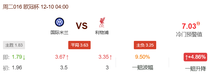 昨日抓冷3场!冷门预警:国米中后场伤缺或遭利物浦钻空取分?