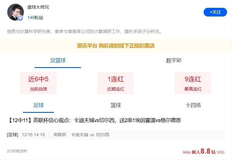 盘球大师兄近期6中5,点击此处查看最新必胜方案!