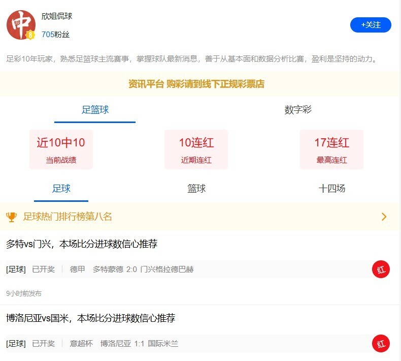 捷报频传!欣姐侃球专家十连红,点击本段文字跟上收割节奏!