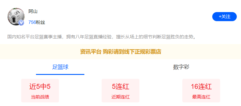 专家阿山五连红!更多篮球信心场次推荐点点关注不迷路!