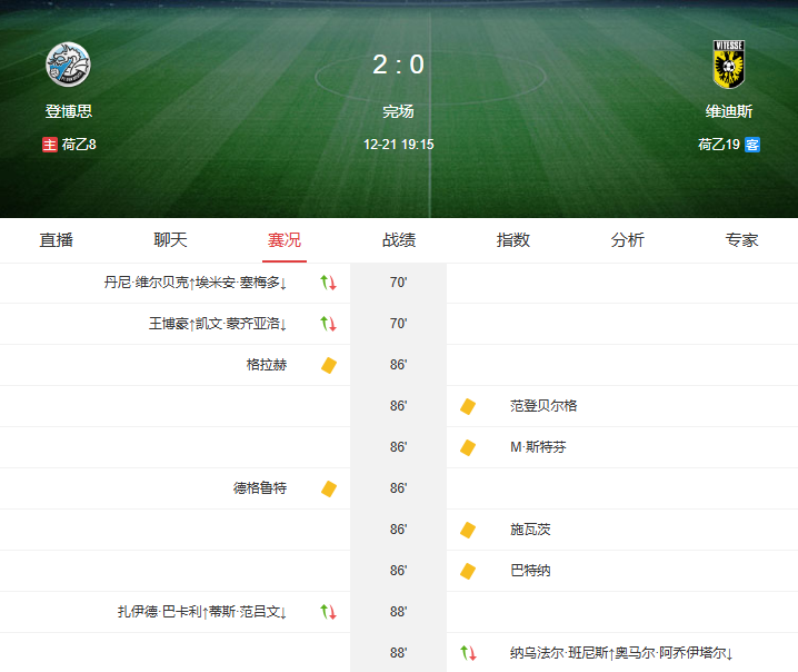 4. 裁判处置:主裁为控制局势连出6张黄牌,邓伯什的德赫罗特、塞巴斯蒂安-卡尔松各领1黄,维特斯的布特纳、里卡多 - 费利佩 - 施瓦茨、马库斯 - 斯特芬、范登贝尔赫4人染黄,王博豪未被出牌。