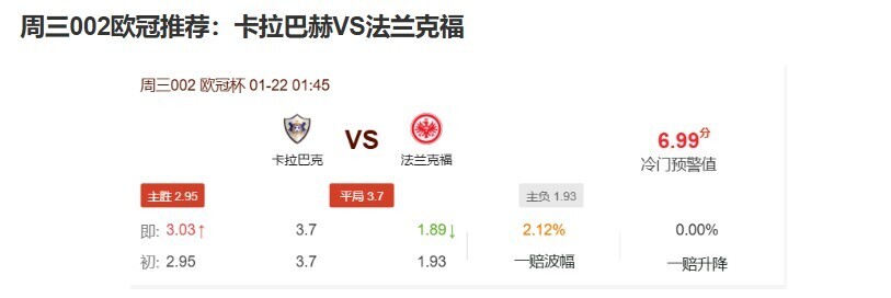 冷门预警成功命中!冷门预警:换帅动荡法兰克福难撼卡拉巴赫魔鬼主场
